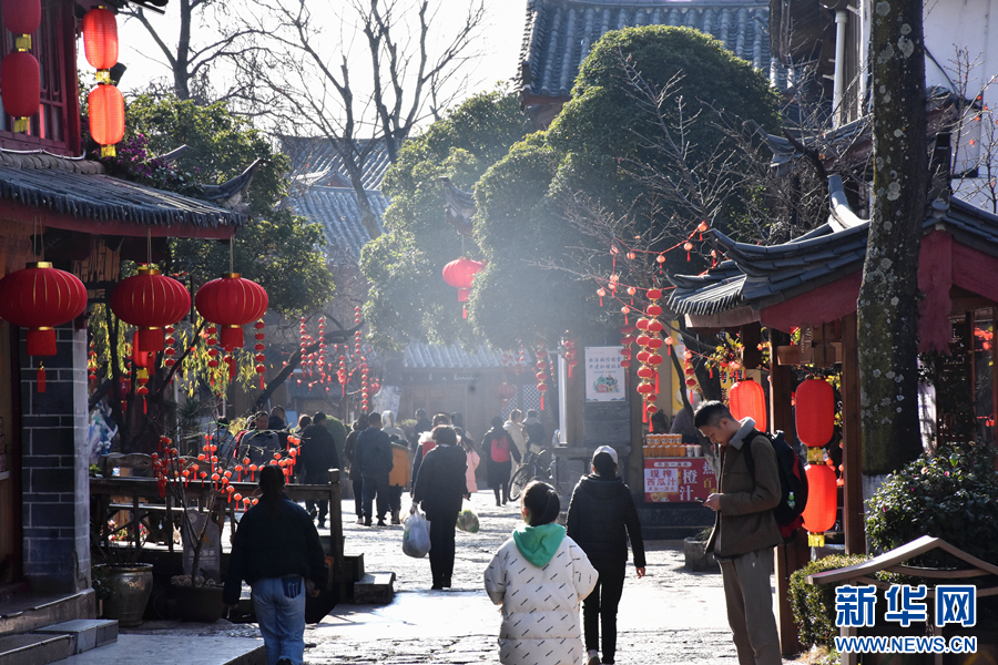 游客在丽江古城游玩(1月21日摄)。新华网发(和润仙 摄)