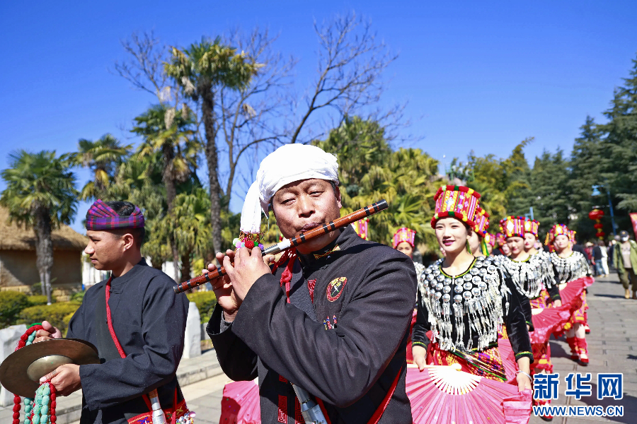 1月23日,云南省昆明市阳光和煦,近百名表演者身着盛装、载歌载舞,一场融合多民族特色的巡游活动在云南民族村开展。作为“彩云之南 春韵非遗”非遗贺新春系列活动之一,云南歌舞乐展演巡游活动将于1月23日至26日每日两次在云南民族村开展。