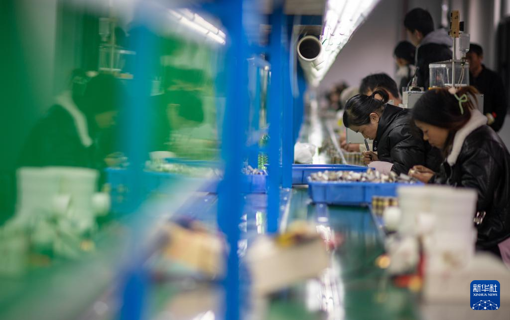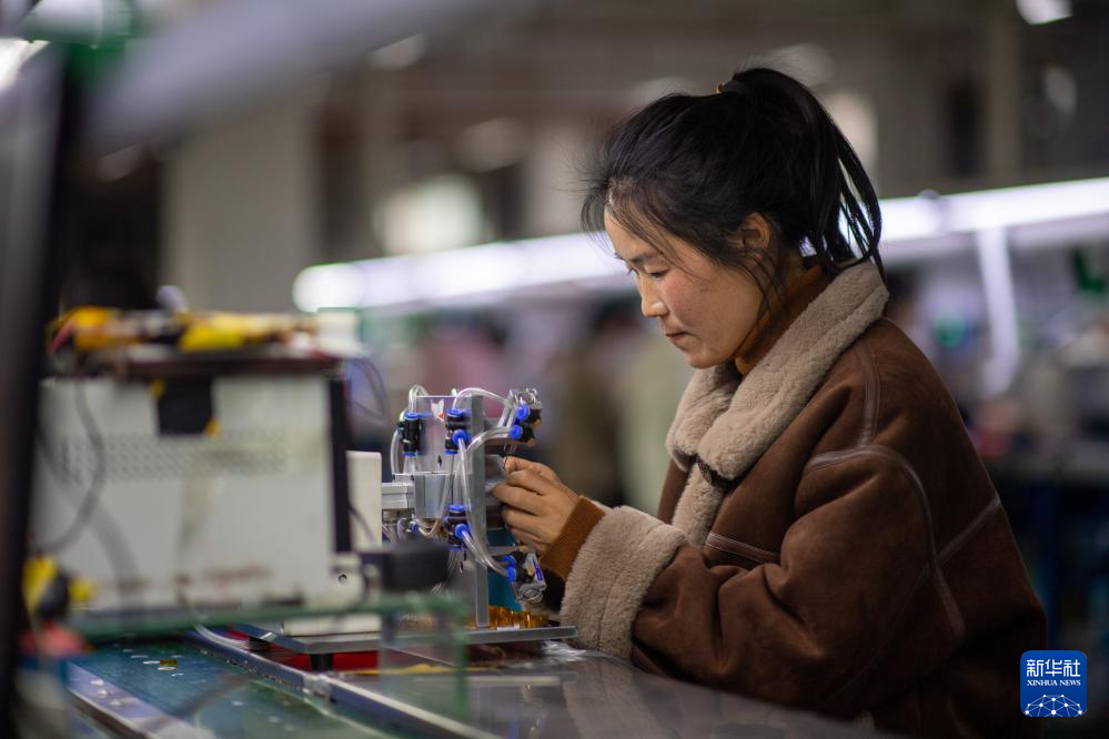 1月21日,云南省曲靖市会泽县钟屏街道居民在家门口的电子厂上班。(新华社记者 江文耀 摄)