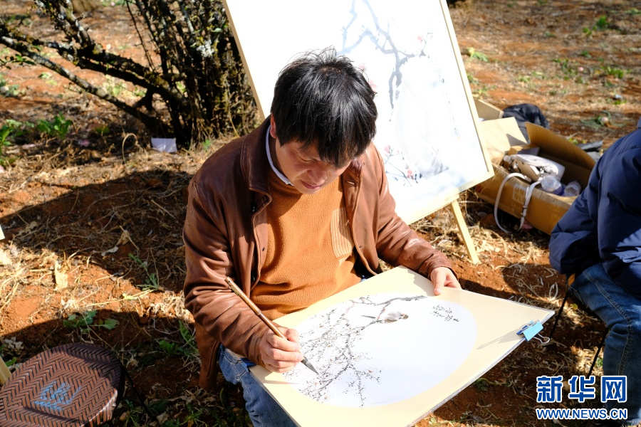 画梅花(2月7日摄)。新华网发(吴丹 摄)