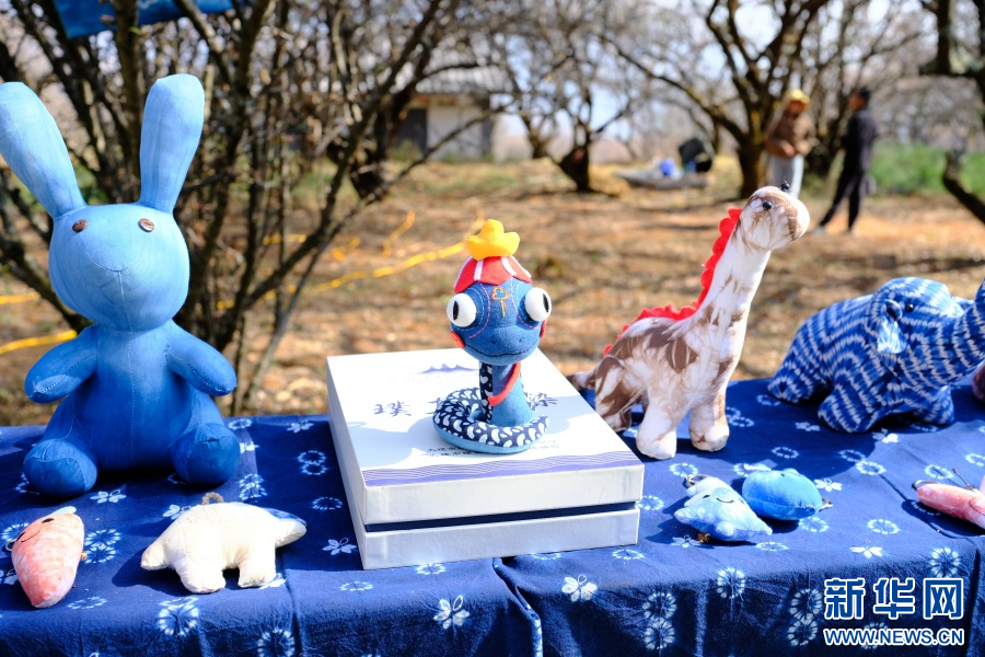 活动现场展示的白族扎染小工艺品(2月7日摄)。新华网发(吴丹 摄)