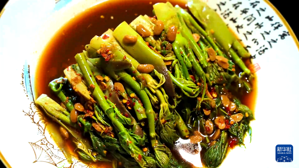 洗净切小的“刺脑包”焯水去生后,配上水豆豉和辣椒拌匀,鲜辣爽口的凉拌“刺脑包”即成,满口皆是春的味道。