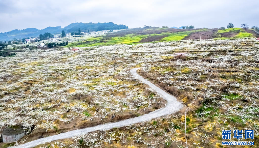 万亩李花迎春绽放(3月8日摄)。新华网发(曾三东 摄)
