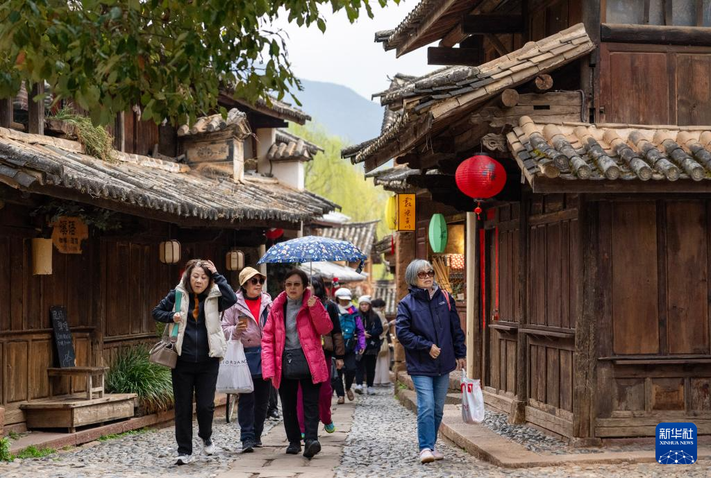 春日,云南省大理白族自治州剑川县的沙溪古镇迎来众多观光游客。古镇位于金沙江、澜沧江、怒江三江并流自然保护区东南部,历史上曾是滇藏茶马古道的重要驿站。古镇保存着传统村落风貌,包含大量明清时期的民居院落、古戏台等历史遗存。