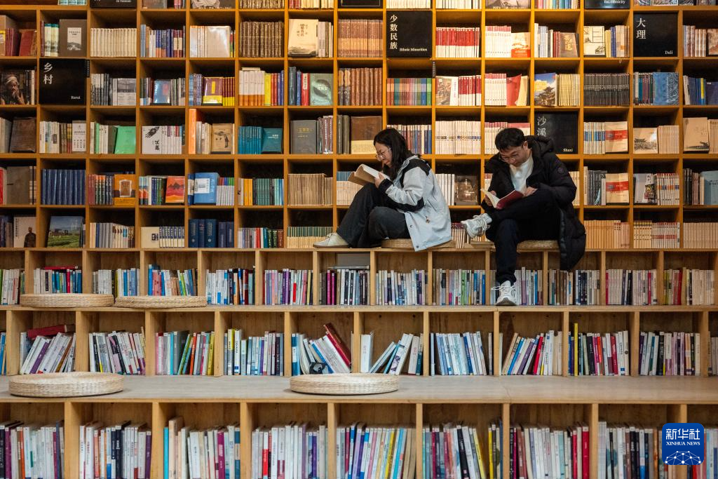 3月17日,游客在沙溪古镇先锋沙溪白族书局内看书。新华社记者 陈欣波 摄