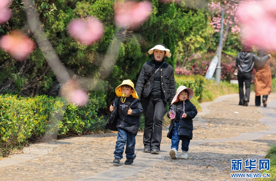 云南省曲靖市沾益区玉林广场,游人踏春赏花(3月14日摄)。新华网发(孙文来 摄)