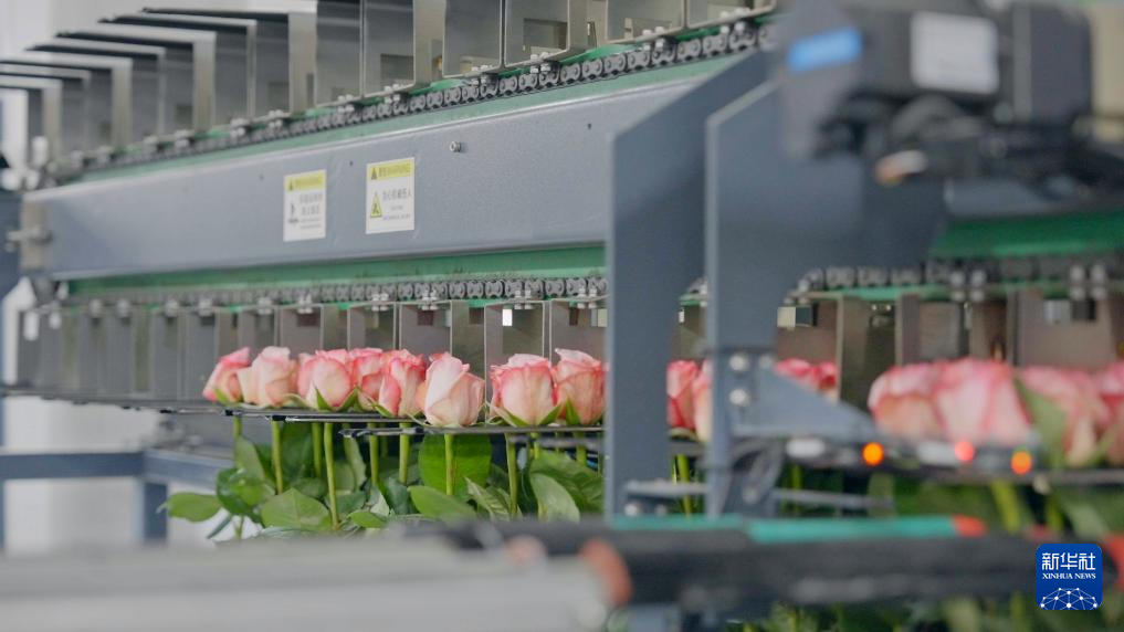 在园区采后处理中心,鲜切花玫瑰采摘后迅速预冷保鲜,去刺去叶后,红外成像识别系统检测花朵开放度、枝干长度及粗细,并按等级分类。随后,自动化设备完成捆扎与包装。标准化作业使效率提升30%。通过保鲜剂与冷链技术处理,鲜花瓶插期可延长7至10天。每束鲜花附有专属二维码,消费者扫码即可追溯生产全流程,确保品质透明可信。