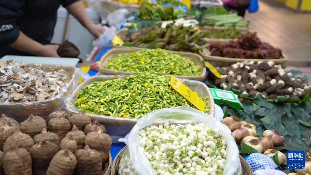 春暖花开之际,云南各种特色山茅野菜大量上市,“逛菜场”成为跨国游客体验云南生活的新方式。