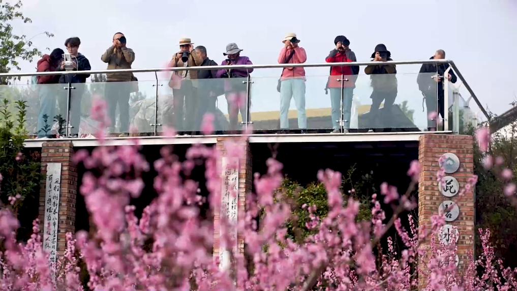 在茈碧湖畔的“桃花源”基地,上万株桃花迎风盛放,娇艳动人,花香四溢,吸引了不少游客前来拍照打卡。