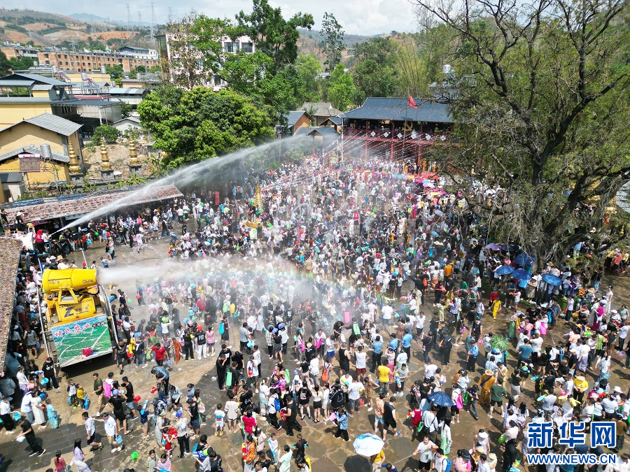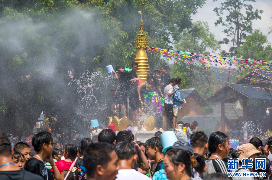 泼水节现场(4月12日摄)。新华网发(郭康 摄)