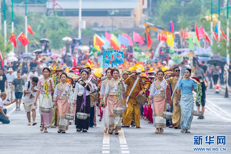 12日,云南省保山市龙陵县勐糯镇大寨社区举行傣历1387年“水韵飞扬 遇见勐糯”泼水节开幕式及泼水狂欢,各族群众和游客欢聚一堂,尽情享受泼洒的快乐。