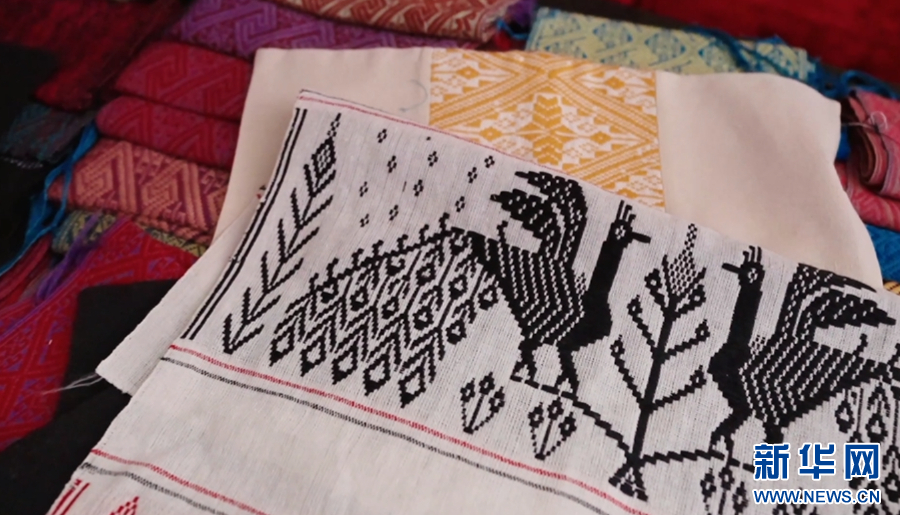 傣族织锦以棉、麻等为原料,用传统的坐式织机织成。织者席地而坐,以腰力控制经线张力,双手持梭引纬,通过挑花、排线等技法织出复杂纹样。常见的图案包括孔雀、大象、菩提叶、几何纹等,色彩多以红、黄、绿、黑为主,对比鲜明,充满热带风情。(完)(刘馨蔚 丁凝 和新兰)
