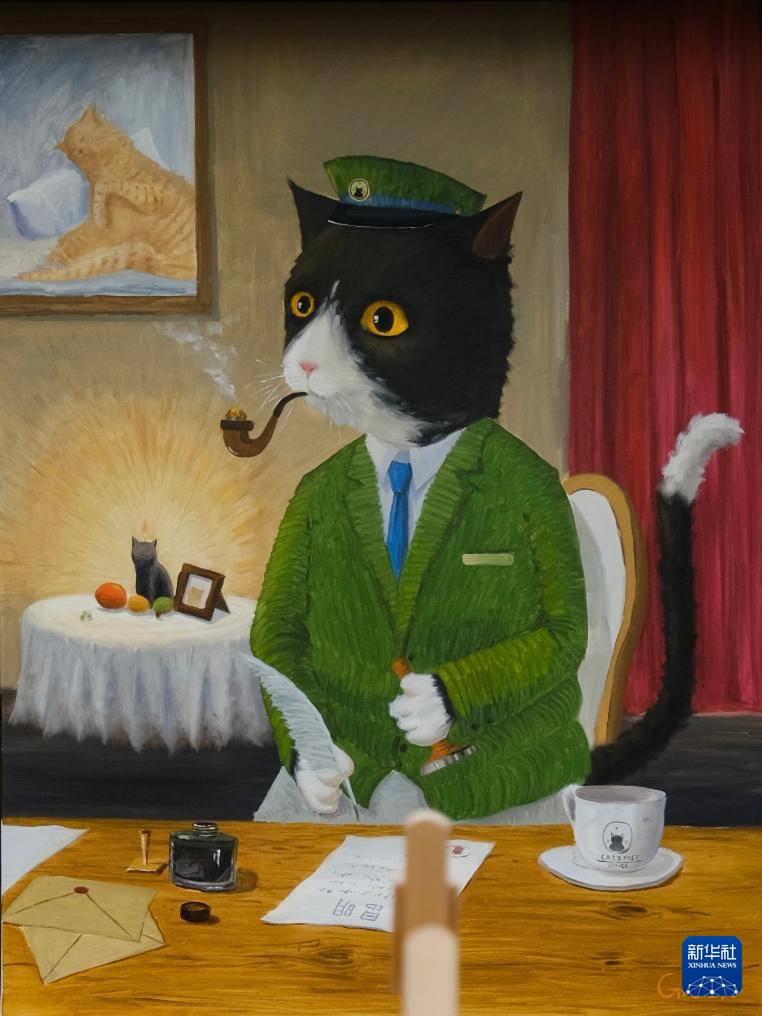 新华社昆明4月13日电(记者赵彩琳)一只黑猫头戴邮差帽,爪握邮戳,身后是滇池的翔鸥和农贸市场熙攘的人流……昆明市鼓楼路一处老花园公寓里,一幅幅画作中央端坐“黑猫局长”,尾巴轻扫过调色盘。