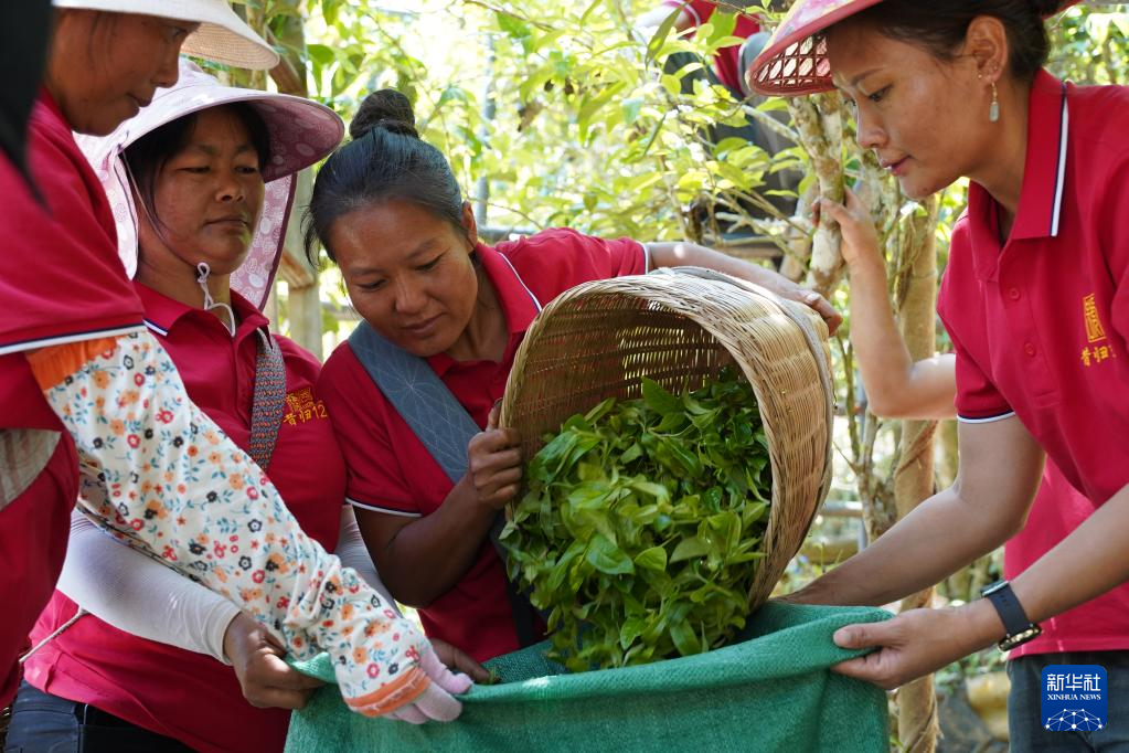 4月14日,昔归村茶农在装运采摘好的茶叶鲜叶。新华社发(张正霖 摄)