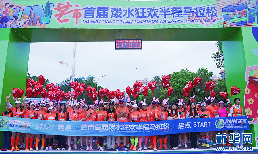 芒市首届泼水狂欢半程马拉松现场(4月13日摄)。新华网发(芒市融媒体中心 供图)