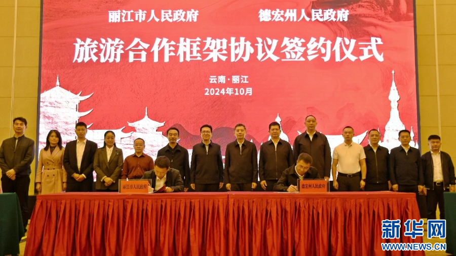 丽江市与德宏州签署旅游合作框架协议(2024年10月31日摄)。新华网发(黎思奇 摄)