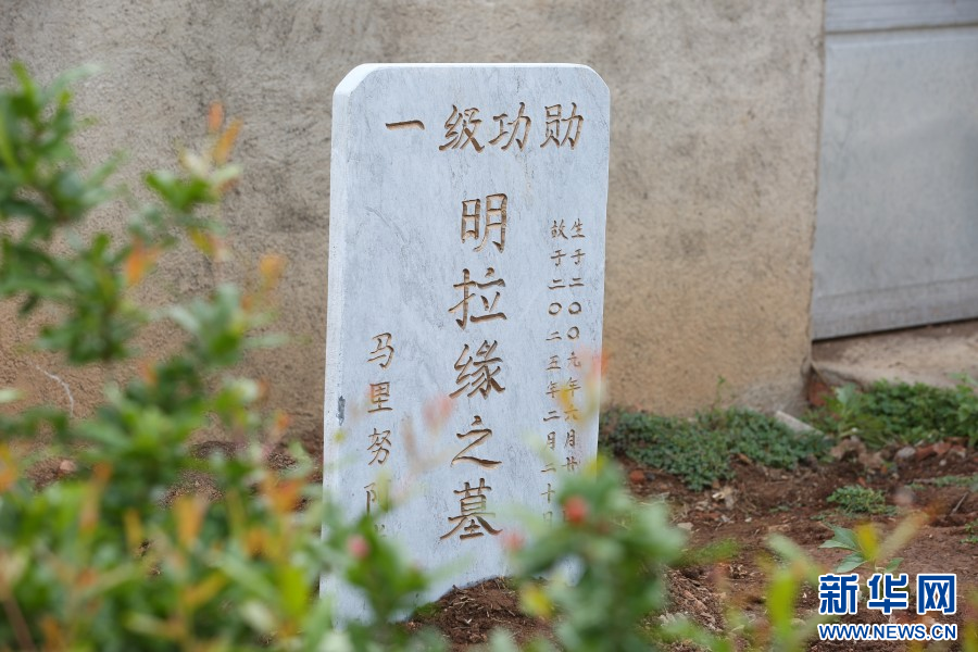 警犬明拉缘的墓碑(2025年4月16日摄)。新华网发(保山市公安局供图)
