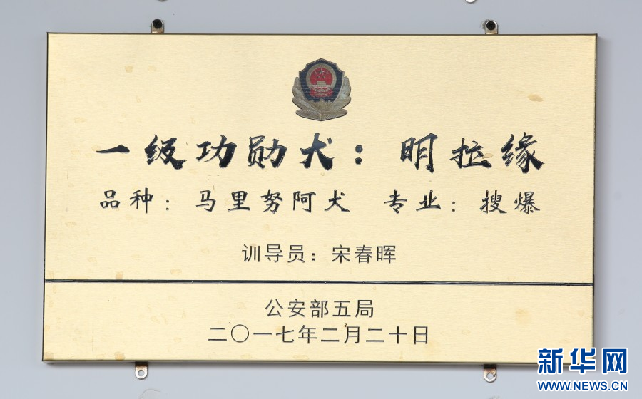 明拉缘的警犬标识(资料图)。新华网发(保山市公安局供图)