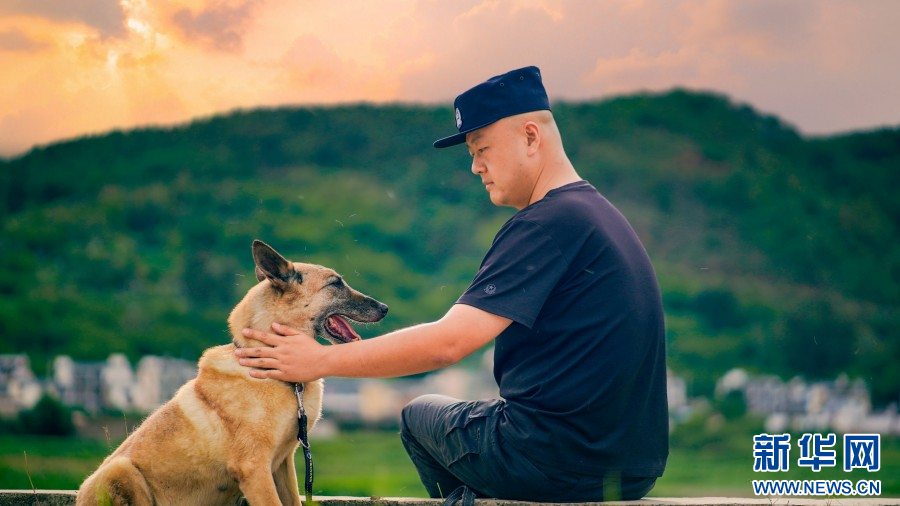 2016年,训导员宋春晖与警犬明拉缘合影(资料图)。新华网发(保山市公安局供图)
