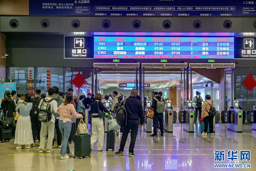4月13日,普洱站候车大厅,普洱开往琅勃拉邦的列车正在检票。新华网发(陈畅 摄)