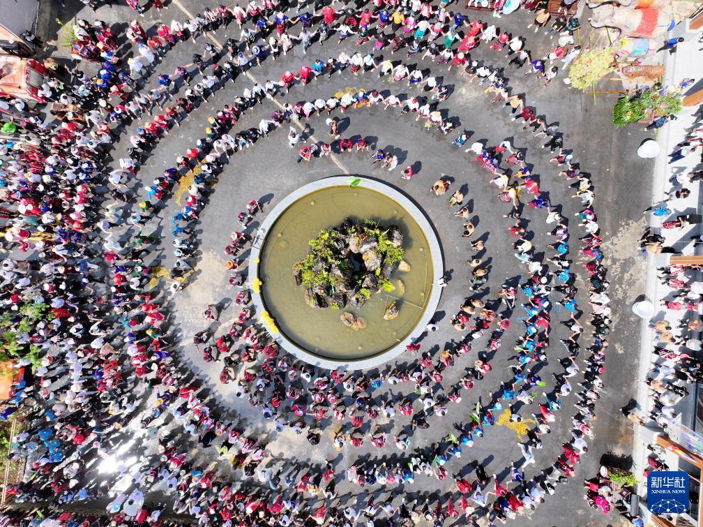 这是4月18日拍摄的云南省临沧市沧源佤族自治县班老乡的贡象节活动现场(无人机照片)。新华社发(杨艳娇 摄)