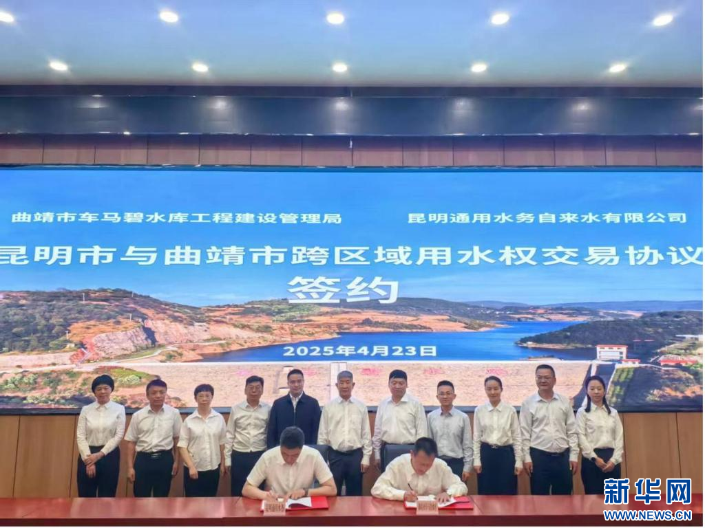 新华网昆明4月26日电 近日,曲靖市车马碧水库工程建设管理局与昆明通用水务自来水有限公司在昆明签订用水权交易协议,交易金额为125万元,交易水量为2500万立方米,交易水量可沿自然河道自流至德泽水库,通过牛栏江-滇池补水工程调往昆明。