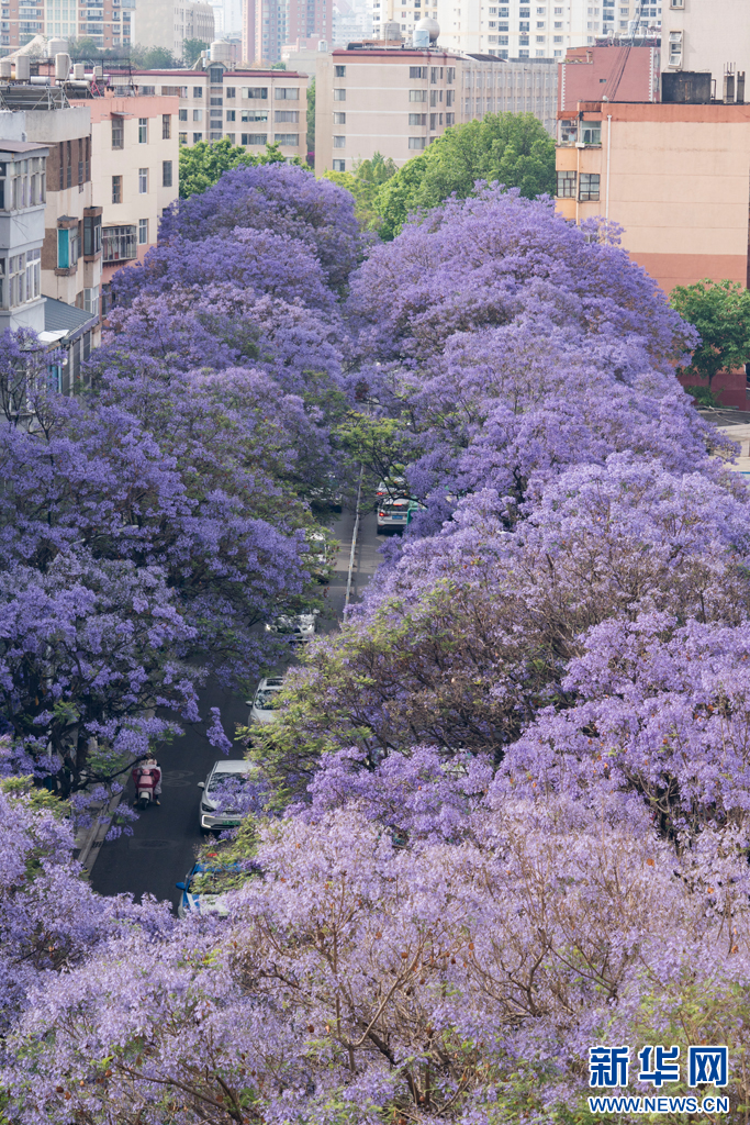 绽放的蓝花楹(5月1日摄)。新华网发(郑益 摄)