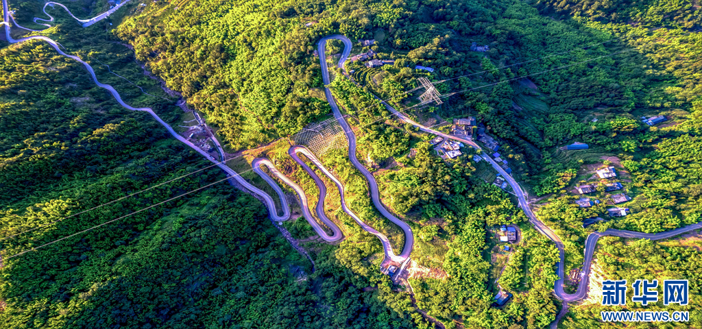 夕阳映照下蜿蜒山间的乡村公路(5月2日摄)。新华网发(曾三东 摄)