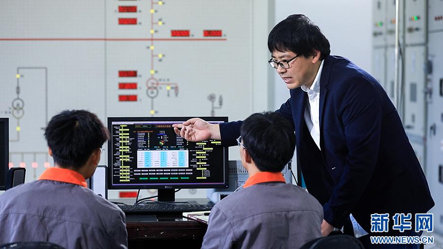 模拟电站实训室内,老师给学生讲解电站相关知识(2022年11月24日摄)。新华网发(徐华陵 摄)