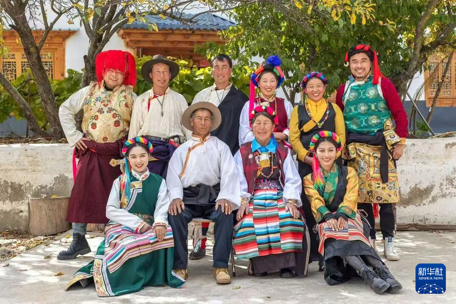 边玛永宗(后排左四)和村民们的合影。新华社发