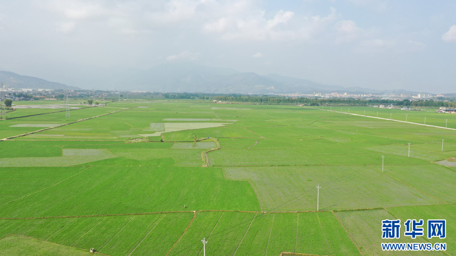 航拍水稻田(5月16日摄)。新华网发(李升宽 摄)