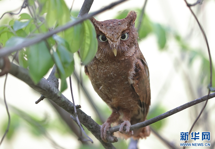 黄嘴角鸮立于枝头(5月18日摄)。新华网发(杨学飞 摄)