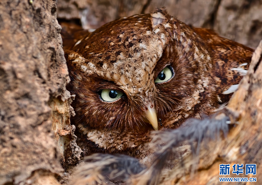 树洞中的黄嘴角鸮(5月18日摄)。新华网发(杨学飞 摄)