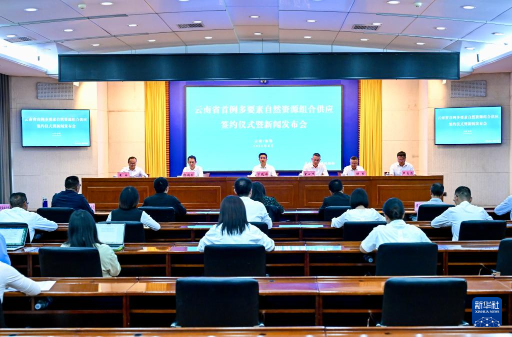 云南省首例多要素自然资源组合供应签约仪式暨新闻发布会现场。新华社发(云南省自然资源厅供图)
