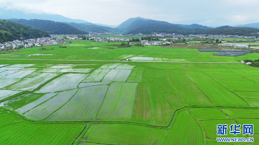 这是6月4日拍摄的云南省腾冲市西源街道马常村田野(无人机照片)。新华网发(赵辉 摄)