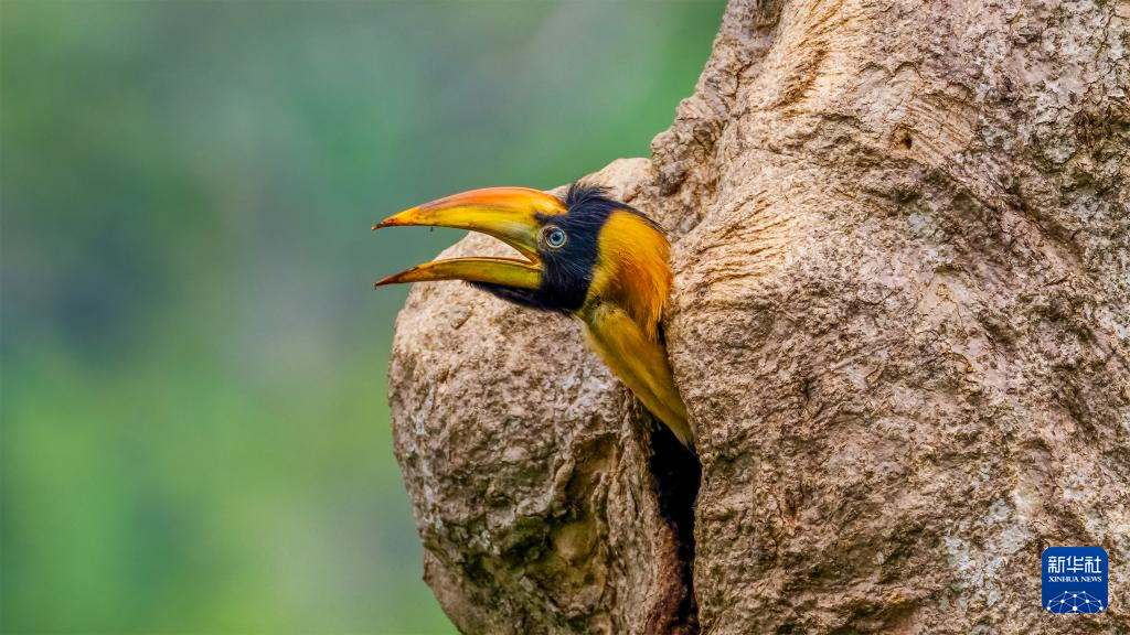 据了解,2025年该区域共有28窝犀鸟入巢繁殖,这是今年首只出巢的犀鸟宝宝。
