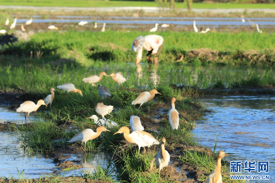 云南省腾冲市和顺镇,白鹭与农人相伴(6月15日摄)。新华网发 (龚祖金 摄)