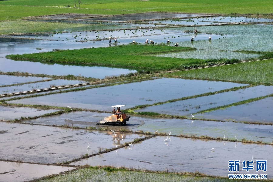 芒种节气以来,云南省腾冲市和顺镇广袤的田野上,“铁牛”轰鸣,白鹭嬉戏,忙碌的农机、插秧的农人与成群觅食的白鹭,给夏种时节的田园增添了一道亮丽的风景线。(龚祖金)