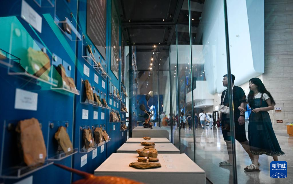 6月19日,观众在国家海洋博物馆参观“寒武纪的黎明—澄江生物群与生命多样性的起源”主题展。新华社记者 赵子硕 摄
