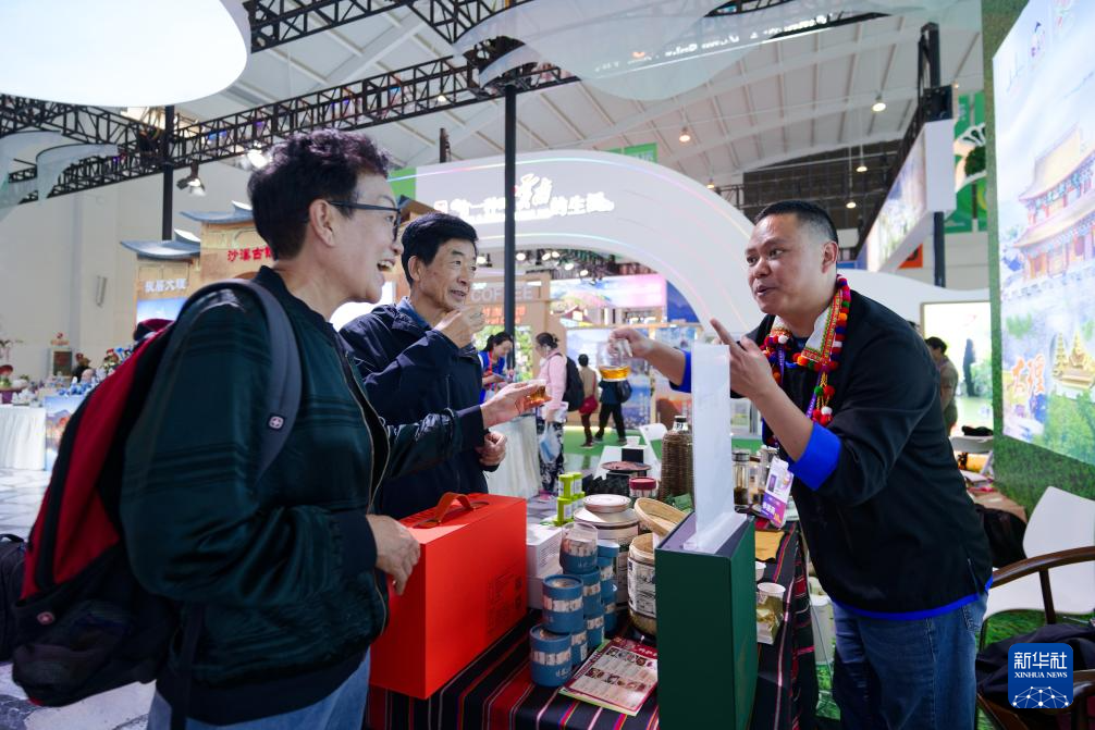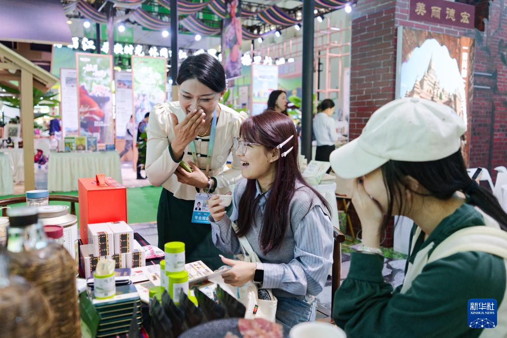 6月20日,观众在第9届中国—南亚博览会旅居云南馆选购特色食品。新华社记者 胡超 摄