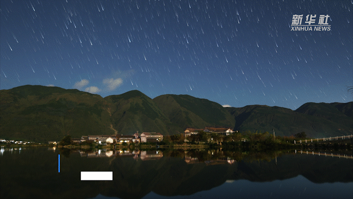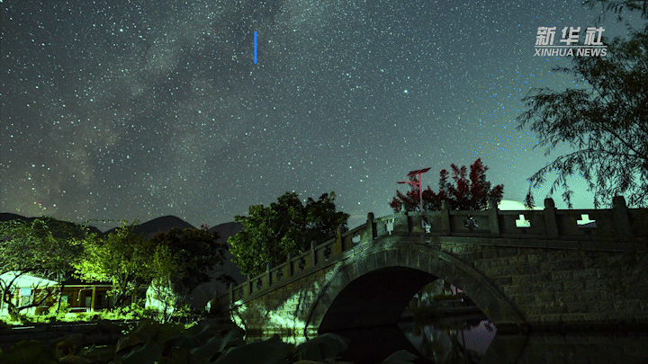 子时(23:00-01:00),风平浪静,星辰环绕,划出一道道星轨。
