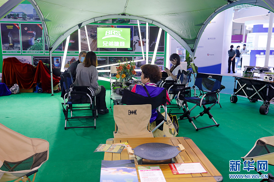 南博会云南体育展区展示的户外装备(6月20日摄)。新华网发