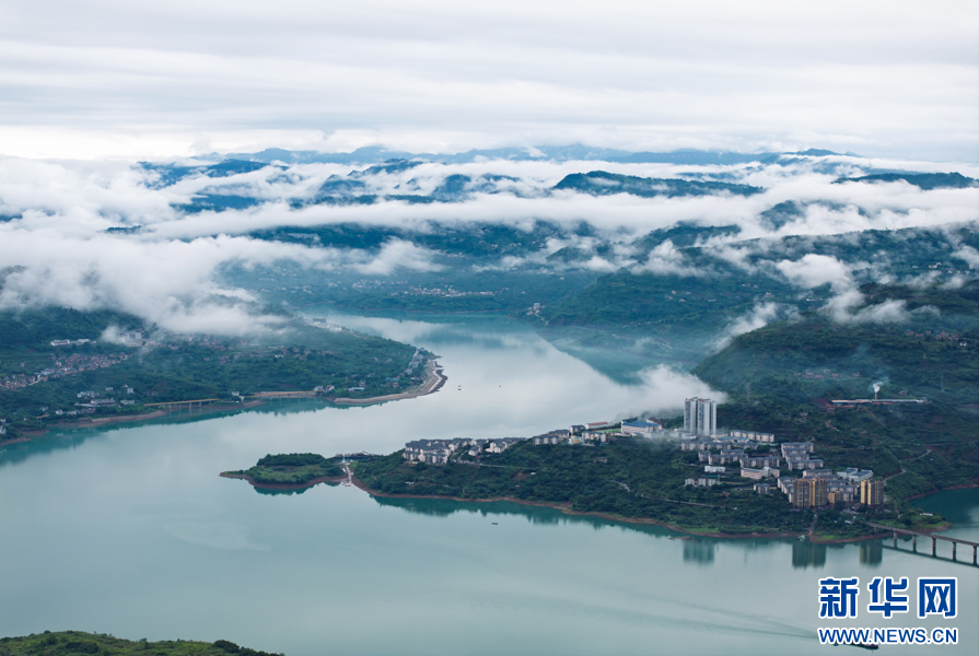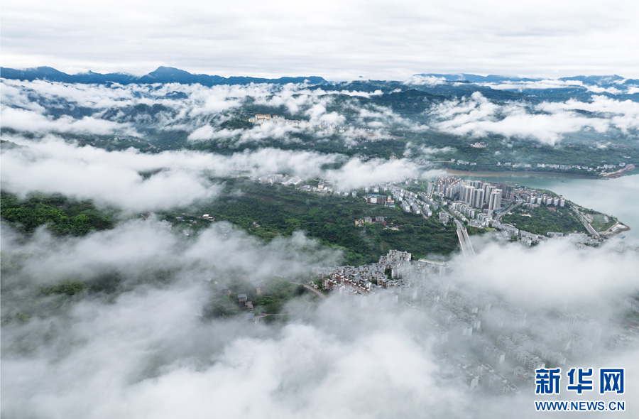 云雾缭绕的绥江县城(6月30日摄)。新华网发(曾三东 摄)