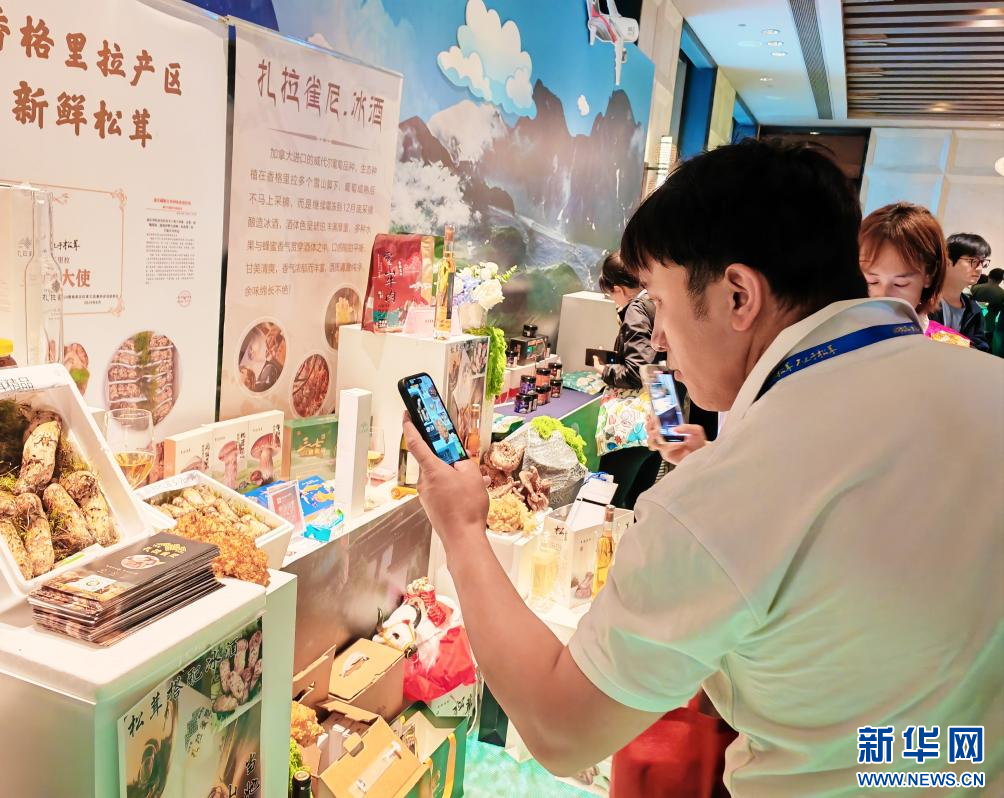 7月4日,一名采购商在第三届香格里拉松茸论坛上拍摄松茸。新华社记者 浦超 摄