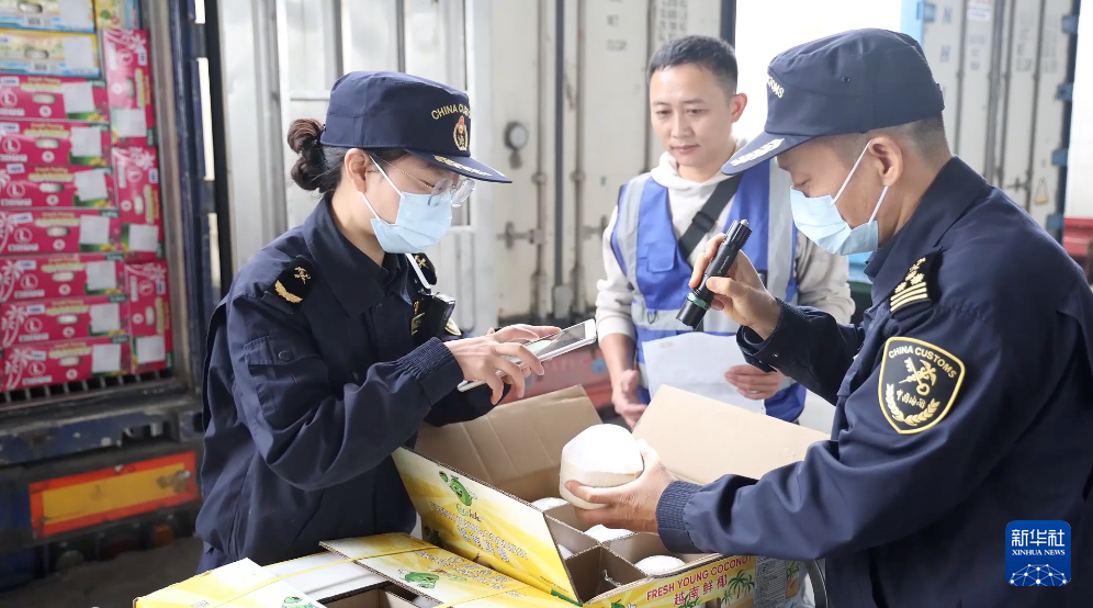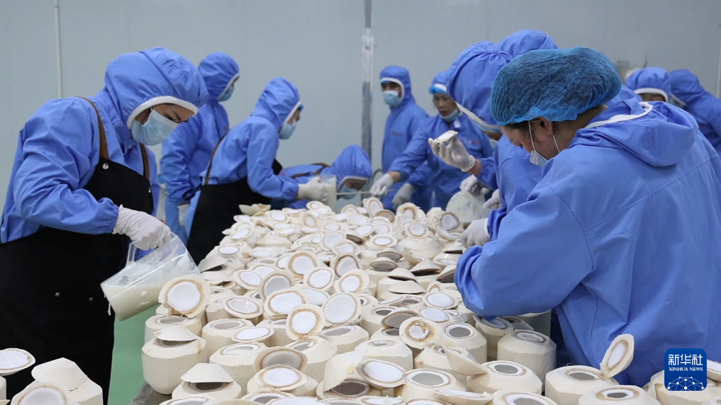 从越南南部的椰林里采收的椰子迅速跨越数百公里,抵达中国云南河口口岸,经海关检验检疫合格后,运往加工厂进行落地加工。这些以边民互市方式进口的越南鲜椰,在中越边境河口县的加工厂里经历开壳、取汁、杀菌等工序,最终变成香甜的椰子冻,销往国内市场。
