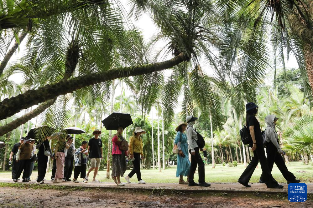 7月12日,游客在云南省勐腊县的中国科学院西双版纳热带植物园景区游览。新华社发(李云生 摄)