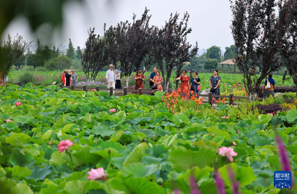 7月12日,游客在云南省曲靖市麒麟区沿江街道麒麟水乡赏景游玩。新华社发(孙文来 摄)