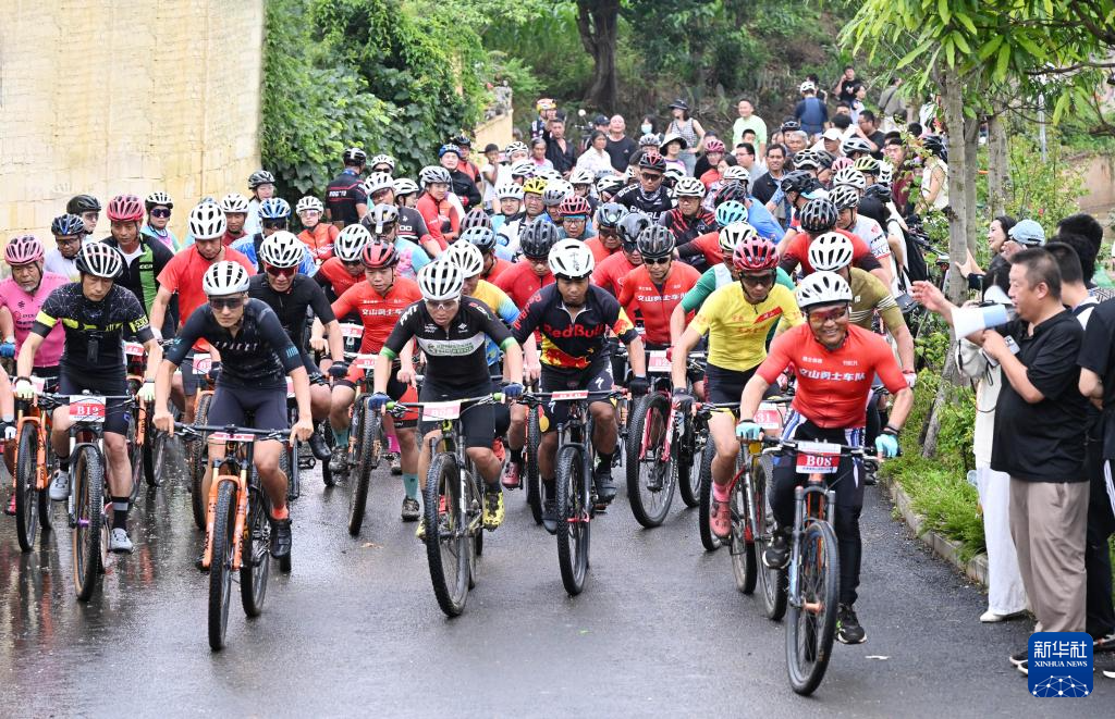 7月12日,在云南省文山壮族苗族自治州文山市新平街道庄子田居民小组,骑行爱好者参加骑行活动。新华社发(熊平祥 摄)
