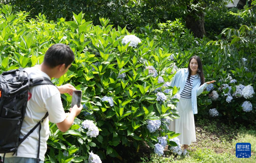 7月11日,游客在大理白族自治州漾濞彝族自治县光明村赏花拍照。新华社发(郝亚鑫 摄)