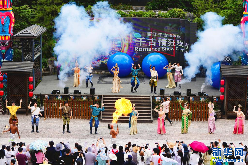 近日,丽江千古情景区暑期活动“千古情狂欢节”开放探营,一场融合民族风情与夏日激情的狂欢盛宴正式开启,吸引诸多游客前来打卡体验。